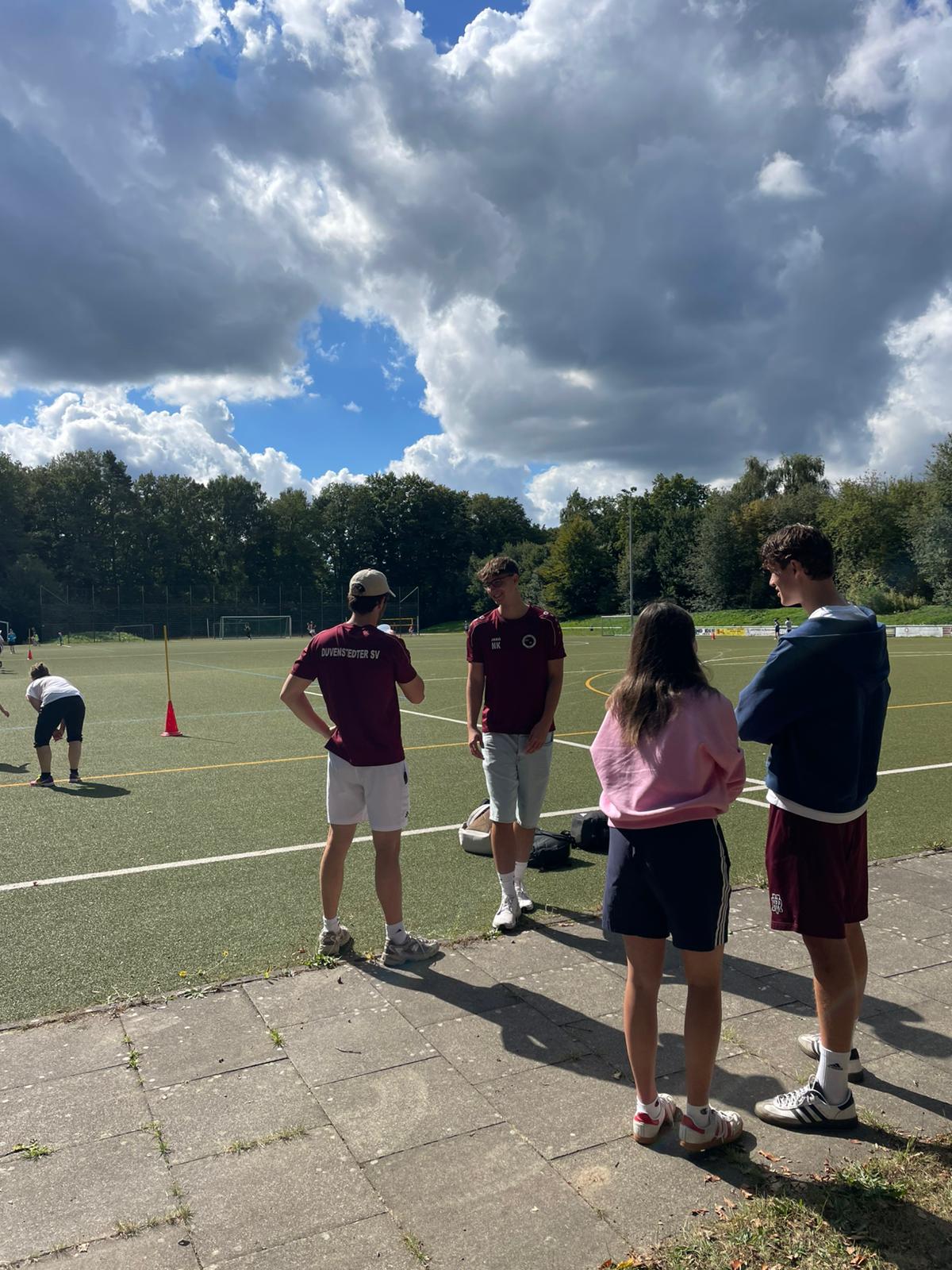 Und so strahlte auch Projektleiter Noah Klünder über beide Ohren, als der DSV-Vorsitzende Oliver Stork ihm für die erfolgreiche Planung und Umsetzung des Platzbaus den großen Dank aller DSVerinnen und DSVer aussprach und ihm einen Basketball mit allen Unterschriften des Vorstands- und Geschäftsstellenteams überreichte.