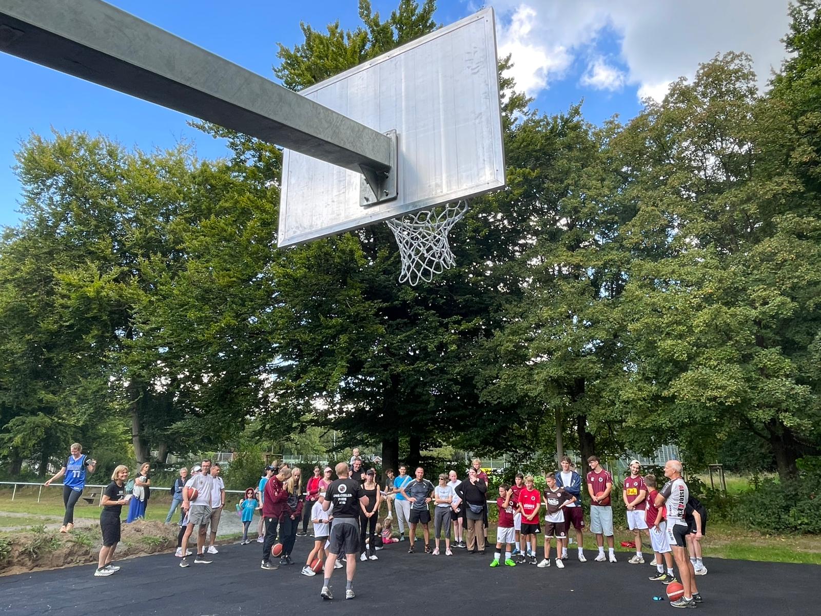 Pünktlich zum Spendenlauf war zwei Tage vorher auch der Platz fertig geworden. So konnten schon am 04. September der Anwurf erfolgen, der in einer perfekten Flugkurve den Weg in den Korb fand - wenn das kein perfektes Omen für das neue Schmuckstück auf unserer Sportanlage ist!