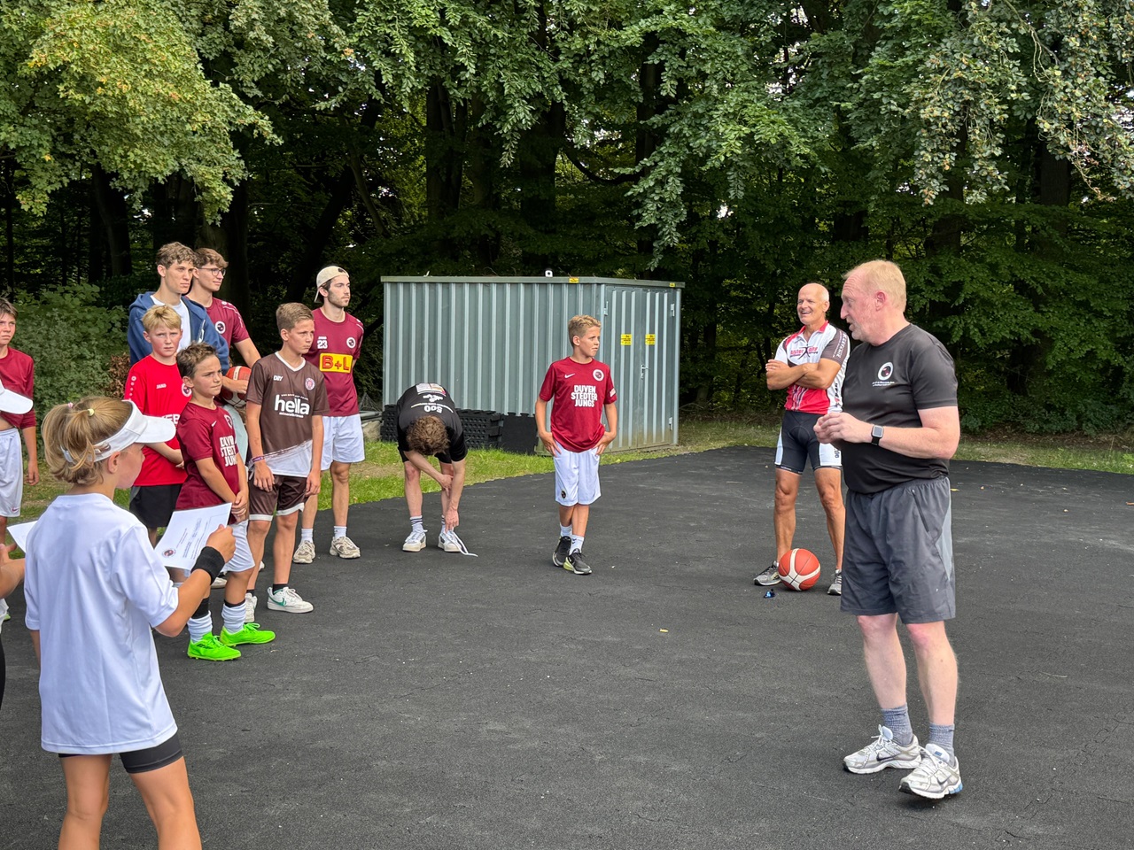 Großer Auflauf am Puckaffer Weg: Unter dem Motto „Laufen. Spenden. Körbe werfen.“ fanden sich am 6. September 2025 über 70 Läuferinnen und Läufer ein. Sie zogen dort unermüdlich Runden auf dem Kunstrasen, um so Spenden und Sponsorengelder für den Streetbasketball-Platz zu sammeln. Am Ende stand die großartige Summe von 4.372€, für die insgesamt 1.155 Platzrunden und damit ziemlich genau 350km gelaufen wurden! Der Einzelrekord stand dabei bei über 40 Runden.